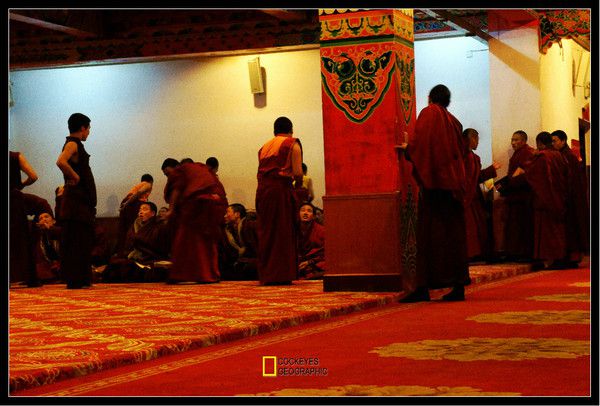 佛学院海拔在3700米左右,初到那里可能会有高原反应,建议慢慢走小声说话,等到适应以后再去爬山或者转经,高反比较严重的话可以服用肌苷口服液+葡萄糖,效果不错。佛学院内男女僧众分界明显,喇嘛和觉姆之间严禁串门、交谈,居士亦是如此。对游客的限制没有那么严格,但仍然禁止进入异性僧众的讲经堂或家中。在进屋餐馆或拍照前最好先询问是否允许,以免引起对方反感,实践证明,用一句“扎西德勒”开头,往往对方都会同意。