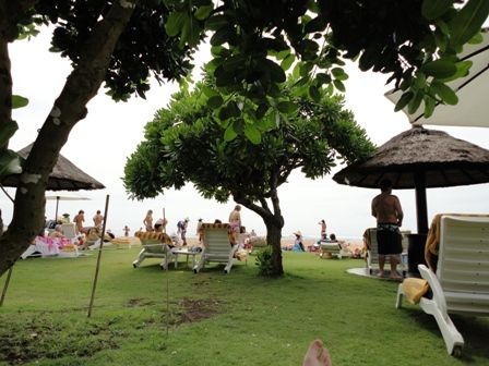 接下来就是4小时的空中旅行了,honey就是看电影玩游戏,我也想看的,但一注视屏幕就觉得头晕,无奈只能闭目养神。大约2:20pm终于抵达巴厘岛了,空中俯视下方看到的蓝蓝海洋和岛屿让我们变得兴奋。下飞机后就该去办落地签了。之前在网上查了7天以内10美金,没想到现在只办30天的签证了!!!25美金一个人,把我弄郁闷了~~~~排队入境排了一个小时,更郁闷了~~~~所以强烈建议下飞机马上去办落地签的地方,我就是下飞机后沿途看架子上的旅游介绍资料把时间耽搁了~~~交钱和入境口在一起,只是不同的队列不同的窗口。交完钱马上去旁边排队。把visa的收据、护照、飞机上填的入境卡,总之所有的这些证件都拿出来交给他就可以了。机场汇率非常低,才8800rp,我们没有换美金,觉得太不划算了,只换了200RMB,换得220,000rp。另外要说的是机场没有blue bird的计程车,要坐它必须出了机场才能坐。我们从机场打车去之前预定好的kamandalu酒店,花了一个多小时,费用约180,000rp。