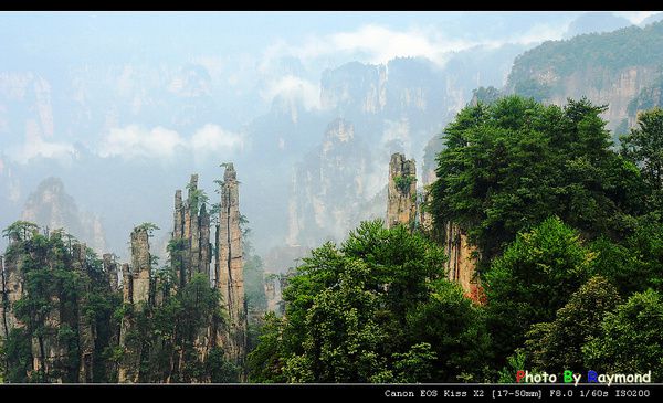 三点过,坐车去天子山,在贺龙公园兜兜转转,在不同的观景台,以不同的角度观赏石峰林。神奇是神奇,却少了份飘渺的意境,如果有云海,这里又会什么样的景致呢?我真的不贪心,只是好奇,想知道而已。