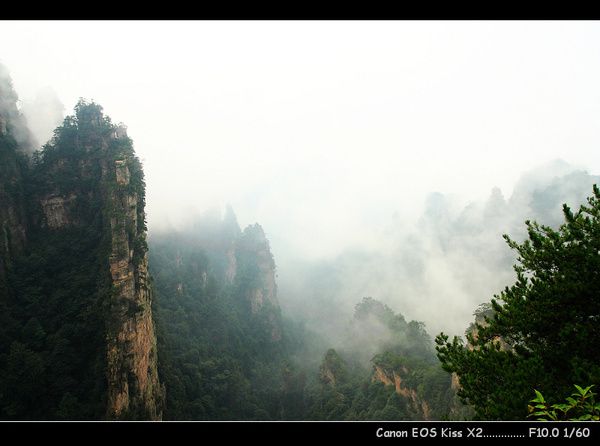早晨虽然没有放晴,却没有再下雨,风的存在让浓雾不可能长久停留,看来张家界终于能让我们在离开前看到它最妩媚的一面吧。