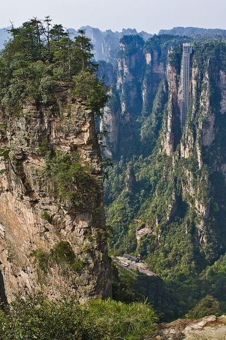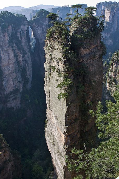 2、11点多回到住宿的客栈稍事休息吃了中饭后去往天子山风景区,在丁香榕路口等了10多分钟,经过的环保车虽然不少但因没有空座位都不停,于是我们决定先走去大观台,依旧是下600级的台阶,下完台阶后有左右两条路,向左走可到神鸡啄食(从这里可看对面的贺龙公园,山下是十里画廊的尽头,景色很美)和一步难行,这两个景点我们在到达景区的当天下午看过了,今天我们向右走,看的是仙人桥和天子座,去往这两个景点的路程较远。风景也不错。