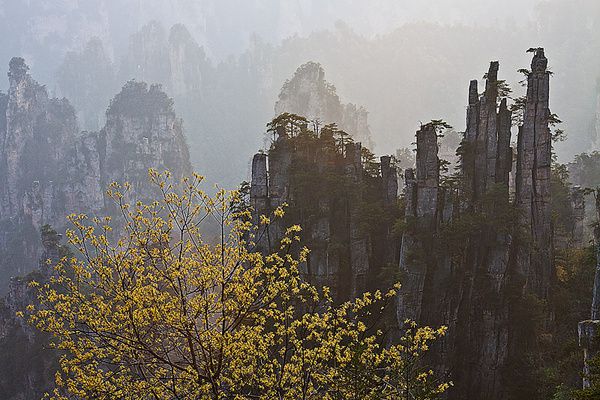 4、从点将台出来在路边等了10多分钟的环保车,坐上后到贺龙公园下,这儿因为是旅游团队必到的景区,到处是熙熙攘攘的人群,此时已是下午近5点,我们随着人群匆匆的转完了里面的几个景点,其实这些景点风景都不错,只是因为人太多让人无心细细品味,也就大打了折扣。到御笔峰景点时已是下午6点多了,这时旅游团队的人基本上已经下山,景区里安静了下来,我们和为数不多的摄影爱好者一起等待着日落。看完日落已是晚上7点,我们急忙赶到停车场,等了近半小时,坐上了工作人员下班的最后一趟环保车回到住宿地。