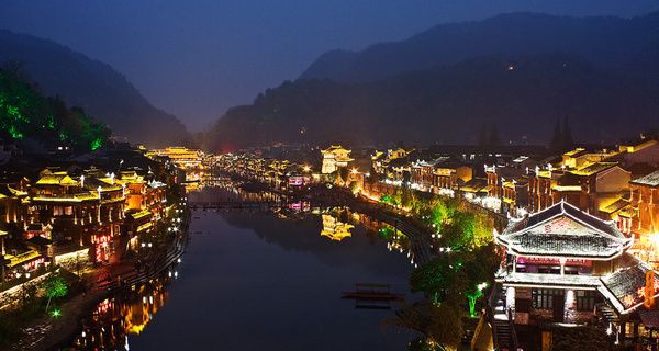 4. 班车2个半小时到达芙蓉镇汽车站,要去古镇还要再做2元每位的面的才能到达。到了古镇旁边的天下第一楼下车看到一家芙蓉镇散客接待中心的门脸就进去咨询明天猛洞河漂流的事,散客是124元门票+50元的接送费。订好漂流的事后沿着街道往里走找到住宿的地,50元每晚,但我觉得条件不太好就不把地址写出来了。放下背包来到古镇里面已是晚上7点多了,但古镇依旧是熙熙攘攘,其实现在的芙蓉镇就是一条街道,从早到晚充斥着游人,周围已经被现代的建筑包裹的严严实实。早已没有了味道,看完后觉得如果单纯为了看古镇的话,这里已不值得单独来了。