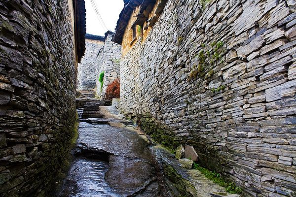 D8(4月21日)早上8点半有专人来到客栈带我到南华门外一日游的专车上,9点准时开车,第一个景点是乌龙峡,这个景点是当地人集资开发的,在一条瀑布旁搭了向下的铁梯直通到谷底,有些陡峭!下到谷底后沿着谷底步行一段路到一个潭边划划竹排再沿着山间小路上来,去吃农家饭,湘西的景色大体都差不多,没有留下什么特别的印象,倒是这顿农家饭吃的很香,不知是饿了还是菜做的好。吃过饭后已是中午1点多了,再做上车20分钟后到达老洞苗寨。来之前看介绍说老洞苗寨2000年才通电,是相对较原始的苗寨,也事先买了些铅笔,准备送给寨子里的孩子,可是当一下车很多的孩子堵着我们,直接往我们手里塞他们编的小东西很直接的说给我1块钱的时候感觉有些不好,进了村子,现在商业开发的也很厉害了,跟着导游转了几户人家,看了表演,觉得没什么意思,其实老洞苗寨的建筑还是挺有特色的,房屋都是用青石板盖成的。只是跟着团队没有时间去自在的品味一下寨子。下午4点钟回到古城。
