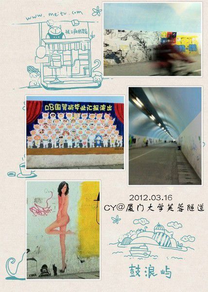 厦大,一进门第一感觉它就是所普通的大学,只是学生宿舍楼比较古老而已;只是道路两边的椰子树比较多而已;我们去了"芙蓉隧道",隧道很长,走上一来一回要花上整整40分钟,由于第二天走了太多的路后,今天我们已经没有力气再爬过山坡去"白城沙滩"了;而且当时天还在下雨.