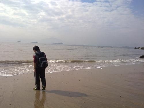 从酒店出来就租了双人自行车,一路骑,看到一片沙滩,就下去了。