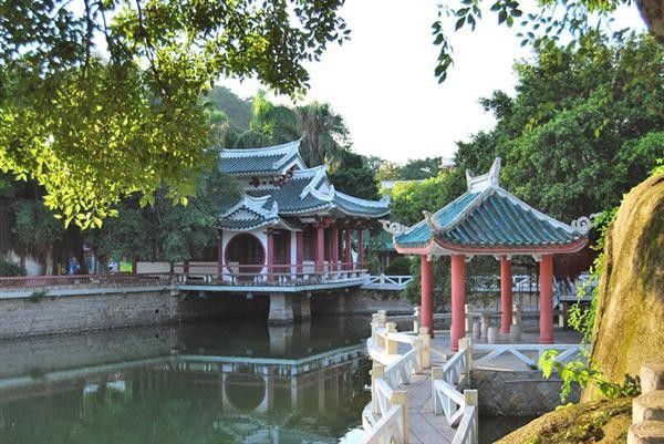 菽庄花园原是台湾富绅林尔嘉的私家花园,五十年代起献给政府辟为公园。林尔嘉对花园精心设计,主要是在于再现板桥别墅的风貌,同时又具江南园林的韵采,利用不大的一湾坡地,创造出无限的空间,“每春秋佳日,登高望远,海天一色,杳乎无极”,把四周能看到的景物全部纳入花园怀抱。他在园内设置眉寿堂、壬秋阁、真率亭、四十四桥、招凉亭、顽石山房、十二洞天、亦爱吾庐、观潮楼、小兰亭等10景,并把台北板桥别墅里的小板桥也搬了来,小巧别致,独具一格。