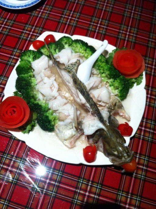 桂花竹笋卷,这道绝对让我欣喜到了!平时吃的桂花鱼都是直接清蒸的,这个则是将鱼肉片下来,包裹上竹荪,然后摆盘时再回复称完整的一条鱼的模样!夹起来的时候鱼肉一点都不
