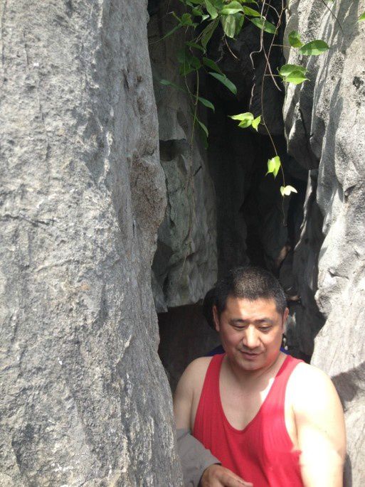 太胖咯,被石头缝卡住啦,衣服脱了也过不去,哈哈哈哈