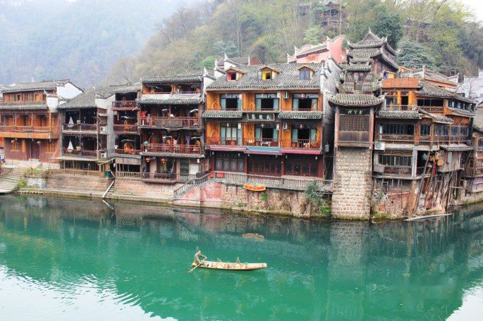 想去风凰古城是因为被那张虹桥边的沱江上的一叶轻舟和吊脚楼群的照所吸引,总以为还能看见些湘西土家族人生活的风土人情。