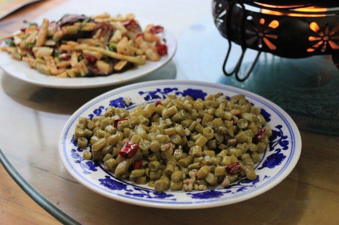 竹笋腊肉,酸豆角