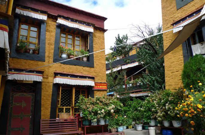 院子里有一个露天大棚,既是著名的仓姑寺甜茶馆。每天早上,八廓街转经结束的藏民会来此休息、喝甜茶。之后出门打车去西藏博物馆。