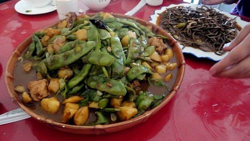 在距离松江河镇客运站不远的一家挂着“铁锅炖菜”牌子的馆子,适合人多用餐,老板很实在,五花肉炖土豆和豆角量大的惊人,味道也很赞。