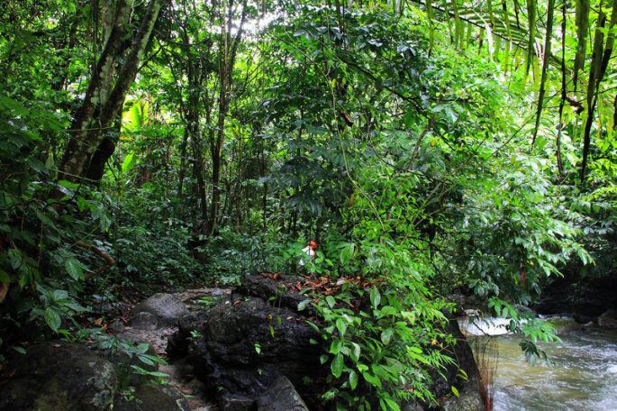 出五彩滩,沿着香蕉林边的小路向北,经东安村、石盘河、上下坑仔、上下牛栏山,约半小时即可到达盛塘村。香蕉是岛上人家除捕鱼外的重要经济来源,路边结满累累果实的香蕉树比比皆是。但由于数量巨大,估计当地人也懒得特意照看,行人经过,掰一两串来吃,料也无妨。