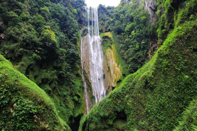 峡谷内荟萃了奇特的地形地貌,有神秘的洞中瀑布、洞穴奇观、幽幽地下暗河、潺潺溪流,峻峭的绝壁上有古老的壮族崖葬遗址,神秘的断石奇景和趋光生长的钟乳石等地质和人文奇观。