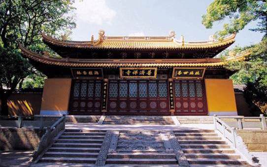 慧济禅寺又称佛顶山寺,位于普陀山佛顶山上,原为一石亭,供佛其中,明代僧慧圆创慧济庵,至清乾隆五十八年始建圆通殿、玉泉殿、大悲楼等,扩庵为寺。光绪三十三年清得大藏经,由文正和尚鸠工增广,遂成巨刹,与普济寺,法雨寺鼎立,称为普陀山三大寺。 寺内大雄宝殿用彩色琉璃瓦盖顶,在阳光下呈现出“佛光普照”的奇景。观音堂内,四壁镶嵌着123尊石刻观音像,汇聚了唐宋元明清五朝名画家的杰作。 |