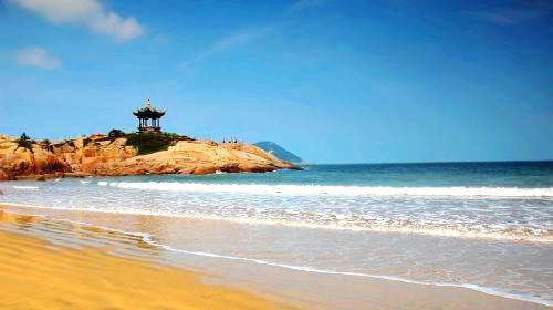 然后可以步行到百步沙。 百步沙位于多宝塔东约百多米处海边,南北长600多米,东西宽200余米。与朝阳洞北的千步沙相对应,故名百步沙,又叫塔前沙。 即使不是夏天,也可以在沙滩边逐浪或者散步,若正赶上黄昏,坐在海边看个日落也很不错呢。 |