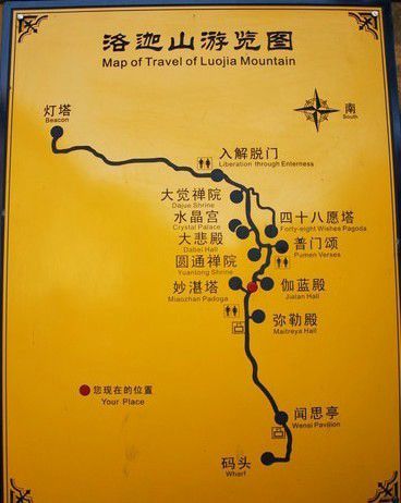 洛伽山→南海观音→紫竹林→潮音洞→不肯去观音院 |