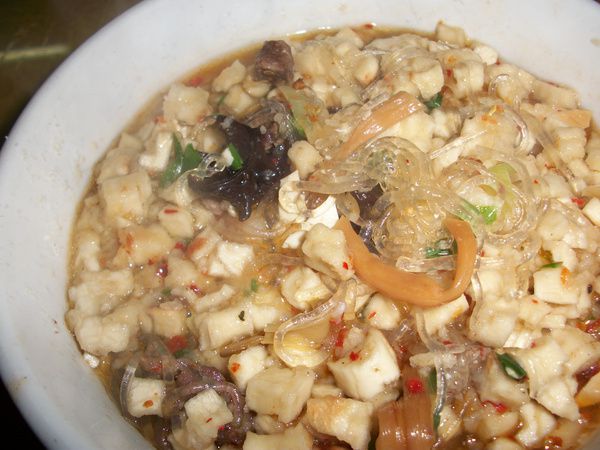 晨起,无人早起,不知是夜的燥热还是大家的疲惫。我和朋友去了王子饭店后面的朱选民大米凉皮,落座屁股凉凉的,没有暖气。早餐似乎不适合凉皮,加了一碗粥,红豆的,似的多少有些热乎气儿,肉夹馍没有吃。像来看热闹的我们看西安人点餐,才豁然开朗――肉夹馍 红豆粥 凉皮 才是当地正统的吃食方法,难怪凉皮迟到最后有些咸咸的呢!
