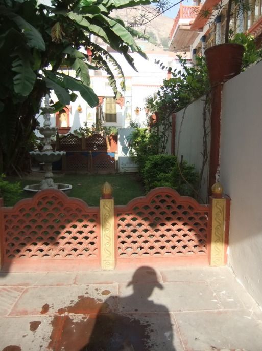 进旅馆文先跟老板谈价格,两间房,一个2人间,一个5人间,谈了大概半个小时,最后说好按每人每天200卢比,住两天,一共2800卢比。其实旁边的一家也不错,有一个漂亮的小庭院,开价是双人间500卢比3人间700卢比,估计还能往下砍。
