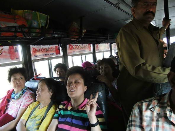 司机开始不让我们把行李放到驾驶室,不过我们还是放了几件,同时我也坐到了驾驶室。后来我们给司机一个中国结,我把它系在前窗的电扇上,还对他表示感谢。之后司机对我们就很友善了。
