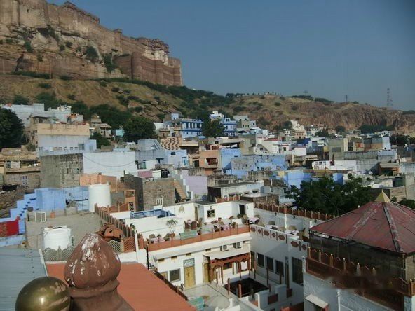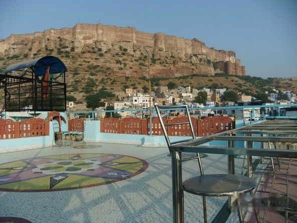 11月5号。吃完早饭,我到旅馆的顶楼平台看风景。在印度风景区,许多的旅馆楼顶都是餐厅,焦特布尔也不例外