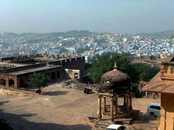 焦特布尔位于塔尔大沙漠的边缘。她是拉贾斯坦邦的第二大城市。这座城市中最主要的建筑是一座极其宏伟的城堡 --梅兰加尔(Meherangarh)。它伫立于市中心的一座陡峭山峰的顶端。焦特布尔还被称为“蓝色之城”,因为城内的大多建筑外墙都被涂成蓝色。(摘自网络)