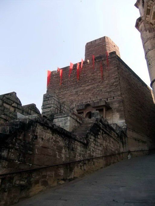 据说梅兰加尔堡有7重门,第一重门是200年前的国王曼•辛格为庆祝战胜比卡内尔和斋浦尔王公而建 。