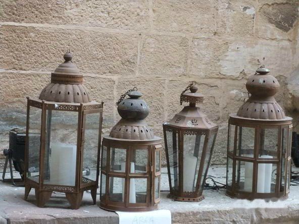 城墙下不知什么原因摆着这些造型各异的烛台,