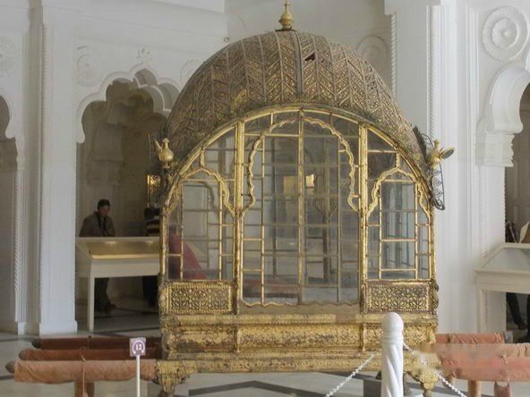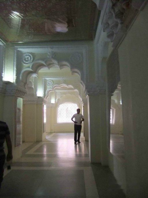 这是一间纯白大理石的房间,想着当年美丽的王妃穿着鲜艳的沙丽坐在这屋子里一定很美