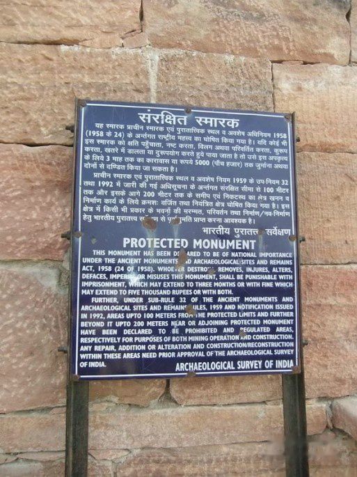我们进了第一重大门,在大门里旁边的售票处等候买门票。我拿着一张500卢比的钞票让卖票员找零钱,但他说没有零钱,就不再理我,只卖票给我后面拿着零钱的游客。我站了一会儿,看他还没有要卖我的意思,便退出队伍,继续朝前走。