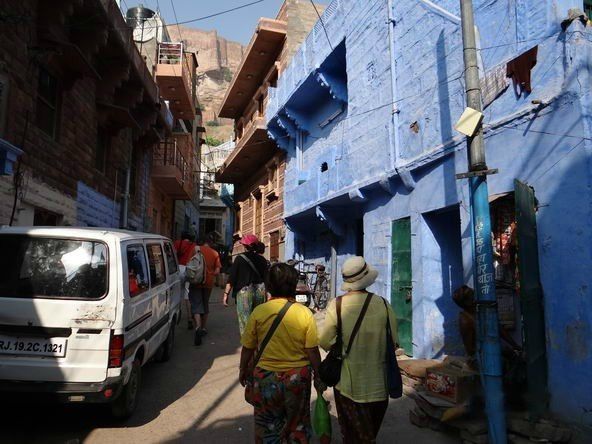 山峰下就是蓝色的古城,只是这蓝色的建筑不如我想象的多,也许是近处只能看到院子里而看不到外墙的缘故