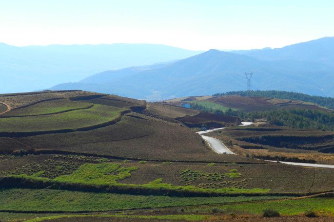 去年冬天,西安天气极坏,整天阴霾密布 ,为了出门换气,看看蓝天白云,挑了南方唯一不下雨的地方:云南东川红土地。去那里的大多是色友们,所以,农家乐门口全部挂的是摄影基地的牌子。像我们这样纯玩的不多。由于这个地方雨水少,他的梯田和云阳等地完全不同,基本依山势而修,不用找平,种的也全是旱地作物:土豆、玉米、油菜等。有的梯田呈馒头状,确是以前没看见过的形态。