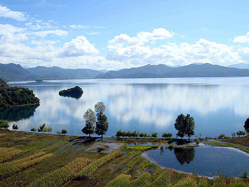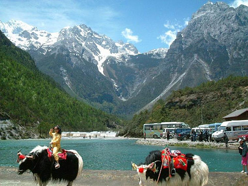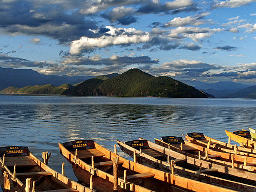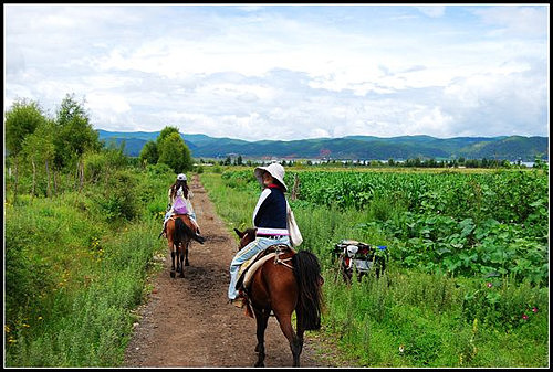 到客栈后办理了入住手续后休息了一小会,师傅就来了电话说已经等在古城口了。之后我们就坐车向拉市海出发了,离城不远半个小时就到了。到了指定的纳西古马场后,挑选自己的坐骑就可以出发了。闯过茶马古道,就能到达“拉市海”了,全程需要骑马近2小时,路况非常差,走这条路的时候实在佩服当年第一个打开茶马古道的人。茶马古道一路很颠,有好几处都是悬崖边的小路,感觉很险。我们在广阔的草甸上休息了约半个小时,马夫就带我们到“拉市海”上泛舟了。我觉得拉市海并不大也不深,据船夫是这样介绍的,拉市海位于丽江城西面10公里处的拉市坝中部,是云南省第一个以“湿地”命名的自然保护区。“拉市”为古纳西语译名,“拉”为荒坝,“市”为新,意为新的荒坝。中午还送了我们烤鱼、土豆、粑粑等特色小吃,我玩的很开心。下午一点多师傅送我们到束河,告诉我们怎么坐车回丽江古城他就走了,呵呵~~很好,那意思是时间不受限制咯!我们就开始逛咯。束河比起大研,它显得很清净,我觉得她很适合喜欢安静的人居住。以后有机会我想来这里住一段时间。