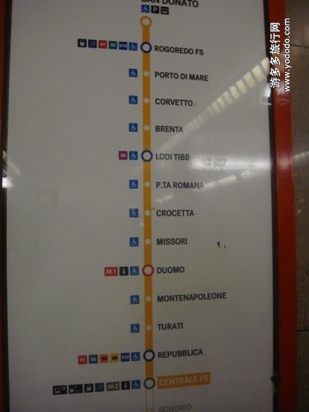 黄线Centrale FS 是中央火车做到DUOMO(就是意大利语大教堂的意思) 图片懒得转了。大家自己看吧。