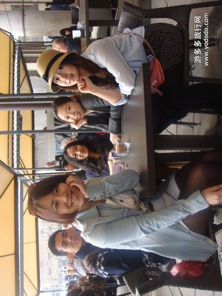然后又开始坐下在广场右手边的咖啡吧一群人坐着聊天。一行5人。阴阳不协调呀。哈哈。