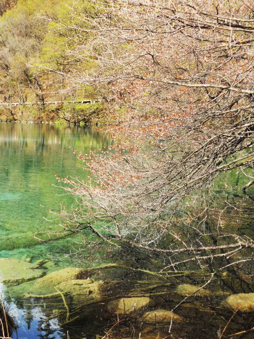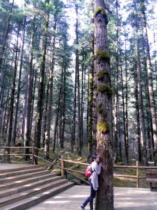 从原始森林一路乘车下行,箭竹海、熊猫海、五花海、珍珠滩和镜海是必游点,车辆有停放点,而金铃海则在五花海到珍珠滩的步行栈道上,两个小海子。我或快或慢的避开旅行团队,也不拍景点标示,然后回来修一修,照片里就只有静的景和动的我了。我就是不喜欢一堆人挤着抢一个东西,我觉得累,累得慌,我是一个懒人。。。