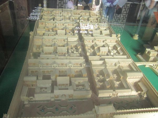 飘到城隍庙蹭听先来到牢狱,知道了跪搓衣板的来源,哈哈 之后到了“检察院”,人事局等等。晃晃悠悠天黑了到“德聚源”点了番茄炒蛋,山药,牛肉,栲栳栳,肉丸汤,豆角炒茄子,凉拌牛筋等特色美食,本来还想再点其他的,老板还特好心的提醒我们吃完不够再点,哈哈太小瞧我们3个女生的战斗力啦!结帐RMB140,相对来说很便宜,值得推荐!!(PS:感觉平遥主要还是以面食为主,不过这些面食比咱平时吃得多了更多的花样,忒筋道!)平遥的夜晚安静了很多,路上穿梭的观光车少了很多,你可以去酒吧坐坐,或者就像偶们一样随便走走看看特色的饭店装饰,感受古城古韵!这一晚睡的特别香!