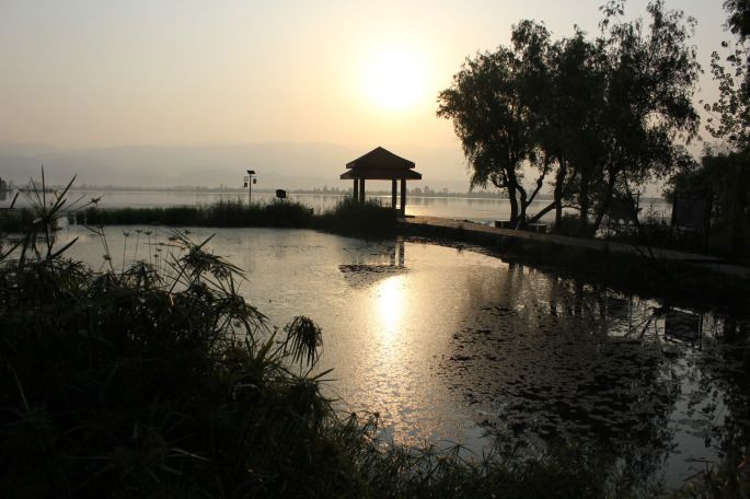 第二天早上六点二十,我顺利到达西昌。因为要等这位朋友一起前往泸沽湖,我从火车站出来后后直接坐上12路去了汽车总站买好去泸沽湖的票,前往泸沽湖的人很多票就只剩九点十分的了,买完票一看时间才七点多,一看远处邛海在朝阳的映衬下特美,于是做了个决定打算前往邛海逛一圈儿,PS:去年国庆的时候去了邛海,当时人特别多根本感受不到有多美所以一直对它的印象不是特别好。 但这一次我想会有别样的收获。早上七点多的邛海,没有丝毫的嘈杂,有的更多的是属于它本身的那一份现实与宁静。