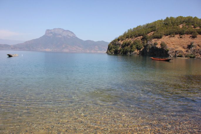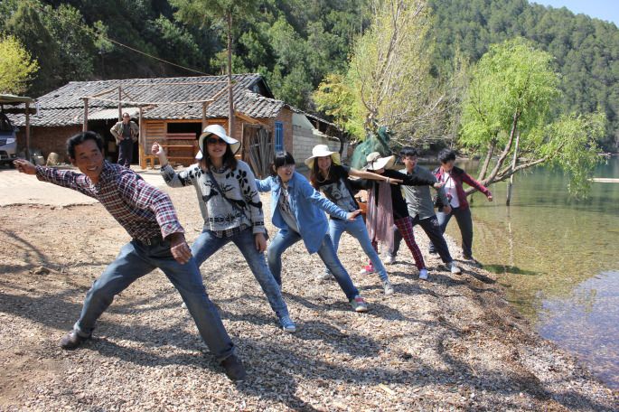 从草海出来,杨哥就载着我们去了赵家湾女神湾,传说这边儿的人都姓赵所以就叫赵家湾,因为我们晚上要住在这边,所以在这边就要和大家分开。在分别之前,杨哥带我们一起玩儿起了打水漂,要不怎么说是专业的呢,杨哥的水漂漂的可远了。杨哥告诉我说泸沽湖的水是甜的,我二话没说,用手捧了一捧就往嘴里放,也不顾大家在里面踩过水了,一尝还真甜,说句实话感觉比我们平时喝的矿泉水都要好喝。所以现在我算是明白了为什么在泸沽湖我的皮肤会变得那么好,那种感觉我在成都完全没有过。