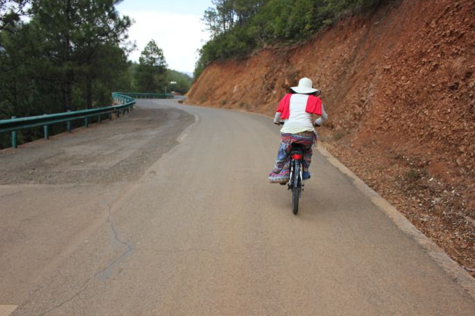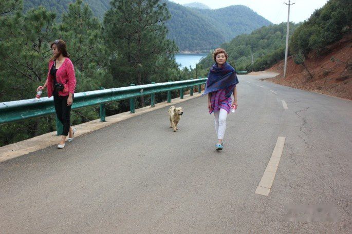 看她这样儿也坚持不了多久,被我说中了,骑了不到两百米。说实话这观景台真没什么好看的,难怪都没什么人来。所以我们也没怎么在这儿停留待了十来分钟就离开了。从观景台下来,邓棋华继续环湖去了我和娟儿打算返回客栈。在回去的路上遇到了传说中泸沽湖的那条狗儿,说它会一直跟着游客走把游客送上山顶去再回来,这次我们是真遇上了,那一刻真的好想哭。我很爱猫猫狗狗,狗比人忠诚,它是通人性的,所以我不明白为什么还会有人把自己养的狗狗抛弃、为什么还会有虐狗一类的事件发生,我只能说这些人不是人或者说不负责任。