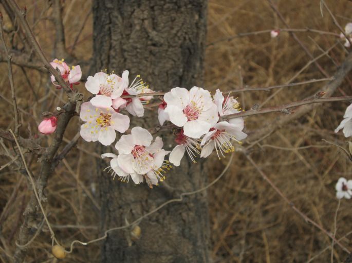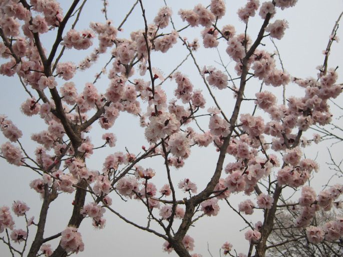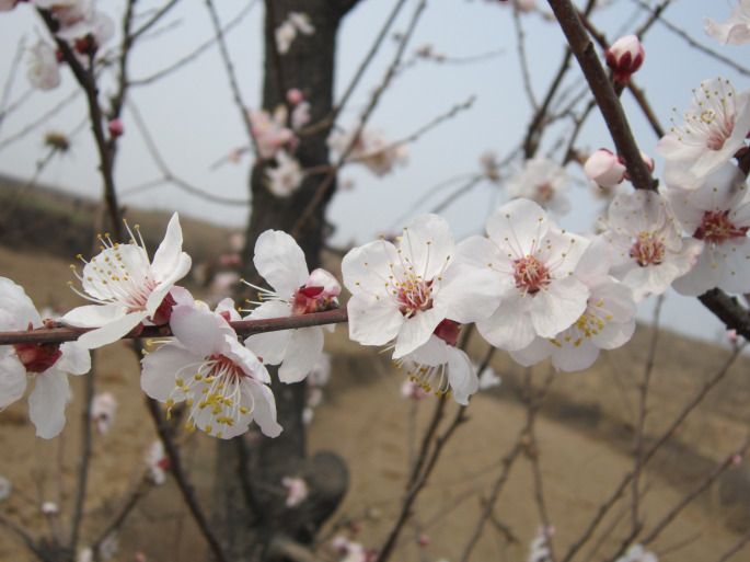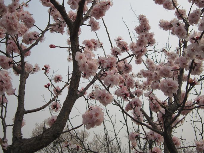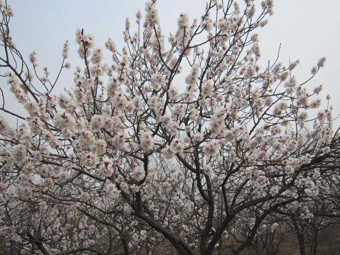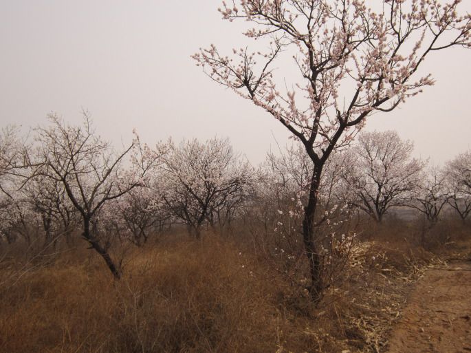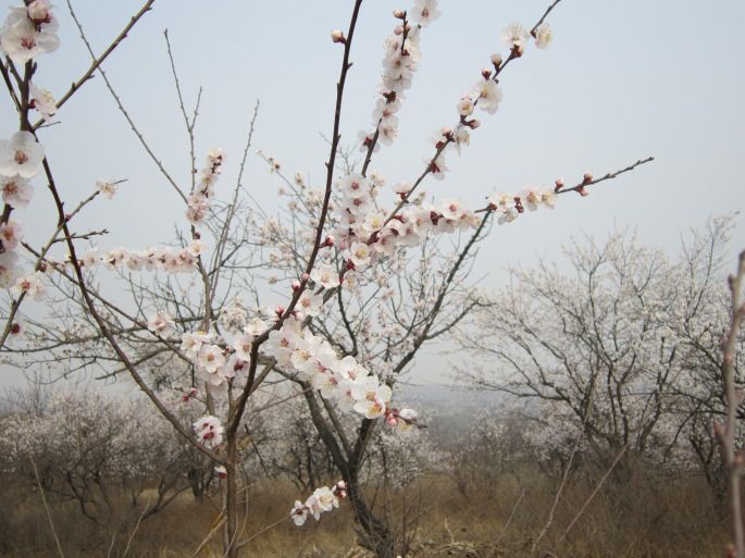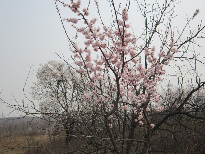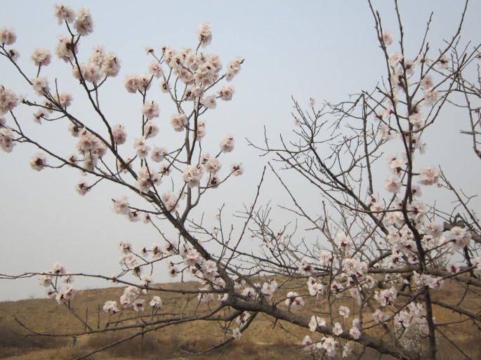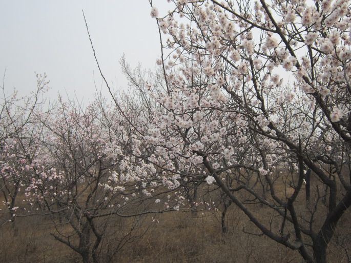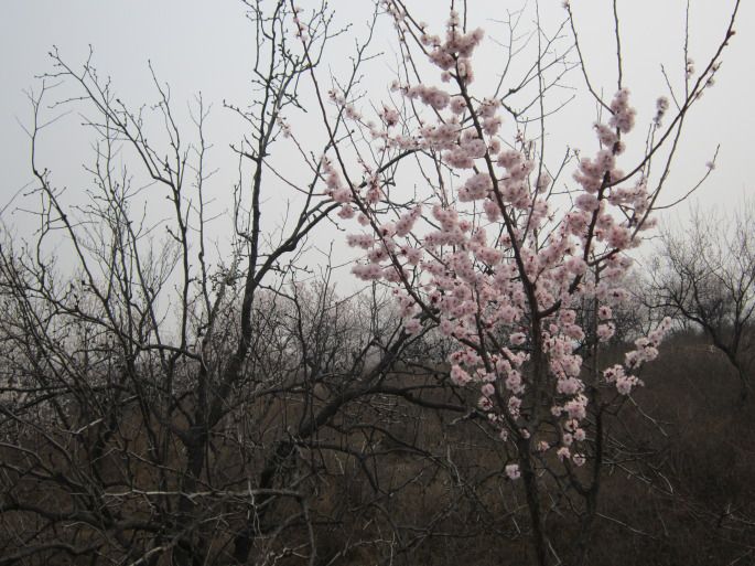 这几张是13.3.30的。市里及公路边的果园里,还只是一丛一枝、星星点点的梨花桃花,看这里已是漫山接岭、连沟成片了,如雪如云,如锦如霞。上月初去西边爬山时,市里花木一片肃然,山上虽还有大片积雪,在一些地方绿草已经长出,还有一些小花,柳树及一些不知名的灌木也已萌发,比市里早了至少半个月。可见山野植物勃发的生机,或可说是山野春来早吧。