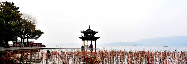 西湖东北角的一个湖心亭,许多游客在那里拍照留影。