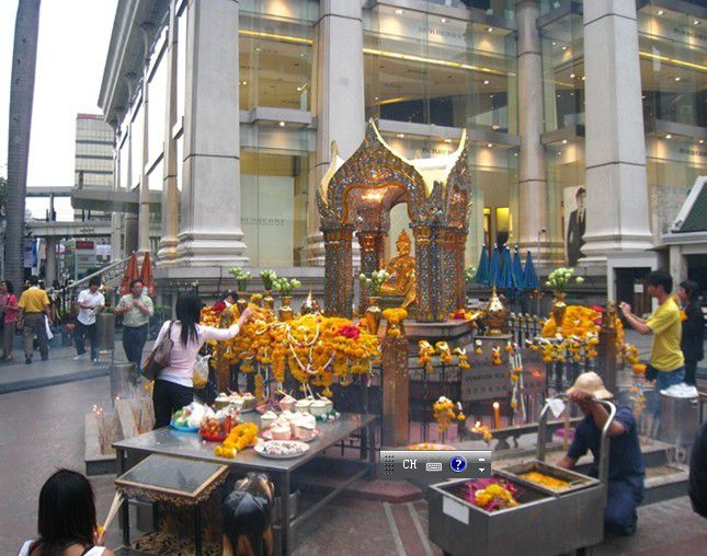 早上考山路打的(150B)到于曼谷市区,在ERAWAN HYATT HOTEL旁十字路口的那尊四面佛