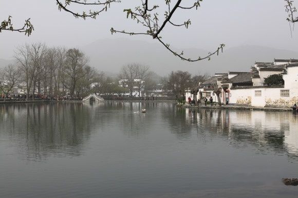 宏村的全景是一个牛形村。村口的银杏和枫杨树已经有五百多年的历史。是牛的犄角。