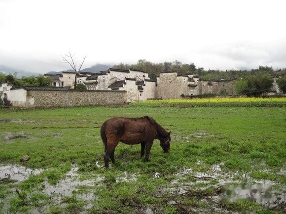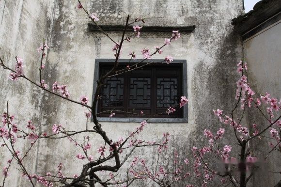 桃花林。油菜花田。映衬下黑白色的古村落。就是记忆最美的图片。