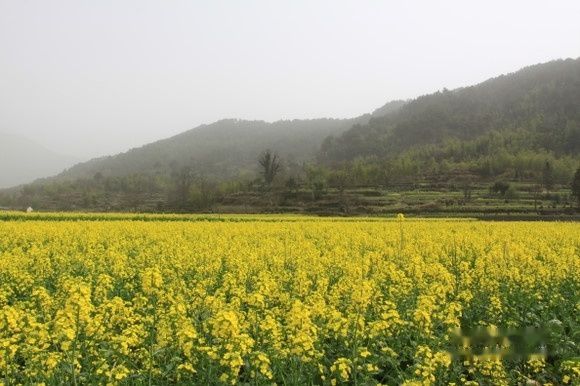 三月的田野在正午阳光的覆盖中。油菜花田已经蔓延成另一片金黄的花海。和宏村仅仅几步之遥。