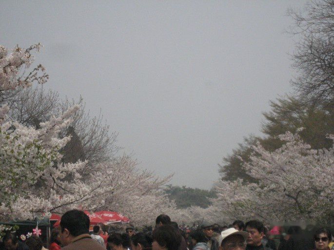 今天去中山公园赏樱,躲开双休日,是为了多看花少看人。到公园却发现,游客还真不少。漫步樱花路,在遮天蔽日的樱花盖下徜徉。