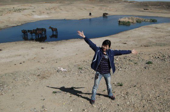 在好几个小时的旅途钟,第一次看到这样的风景,有水,有动物,有植物,临近公路。我一声尖叫,苟师傅一个急刹车,汽车差点抛锚。