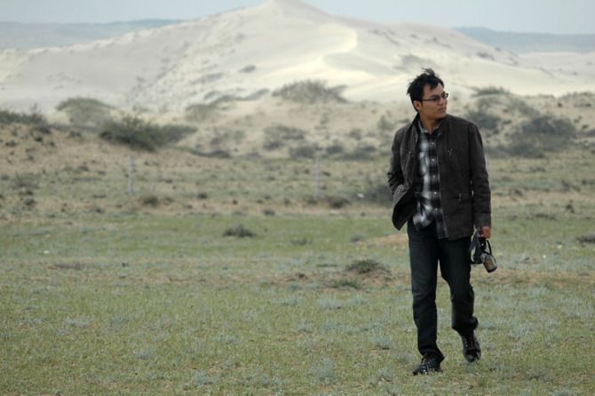 在离公路2、3百米的地方,有全沙的沙漠地,如果不是当地人,应该是找不到的,苟师傅特地带我们进去拍照
